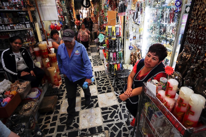 Isabel, dueña de un puesto en el mismo pasillo que el de Karina, no precisa teorizar sobre su fe, ni sobre sus veladoras o sus inciensos. Ella prende un cirio y pide a Dios porque le "escucha".