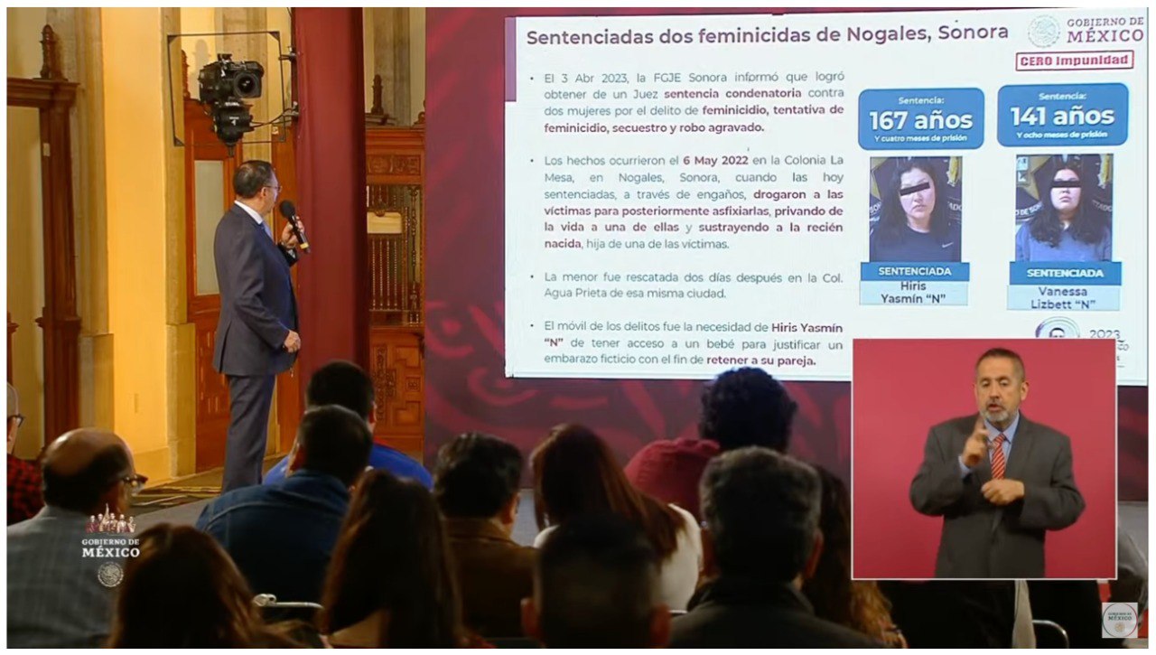 Ciudad de México, 4 de abril (SinEmbargo).- El Subsecretario de Seguridad, Luis Rodríguez Bucio, informó esta mañana de la sentencia conjunta de más de 300 años de cárcel para dos feminicidas en Nogales, Sonora, por matar una mujer y secuestrar a su hija de menos de dos meses de nacida.