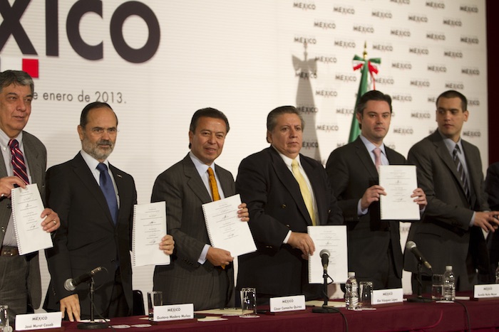 El ejemplo más tangible es el denominado “Pacto por México”, acuerdo nacional respaldado y firmado por cada uno de los partidos pertenecientes al status quo (PRI, PAN, Partido de la Revolución Democrática-PRD, Partido Verde Ecologista de México-PVEM).
