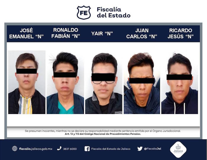 “Los detenidos fueron identificados como José Emanuel ‘N’; Ronaldo Fabián ‘N’, ambos de 19 años y Yair ‘N’, de 22 así como Juan Carlos ‘N’, de 22 años y Ricardo Jesús ‘N’, de 21 años, quienes se encontraban solos en uno de los cuartos con una de las menores, por lo que fueron puestos a disposición del agente del Ministerio Público”, agregó.