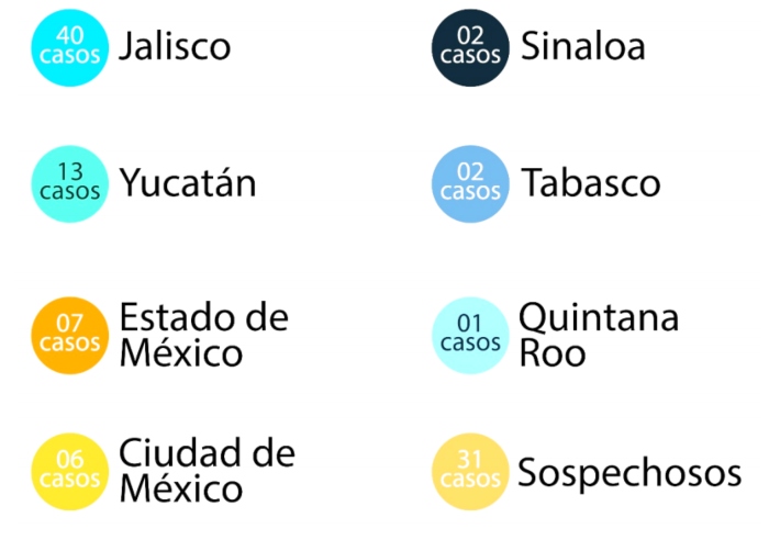 Según el informe, Jalisco es el estado con más casos dentro de centros penitenciarios con 40 confirmados. En segundo lugar está Yucatán con 13 diagnósticos positivos, en tercer lugar se ubican el Estado de México y la Ciudad de México con siete y seis casos, respectivamente.