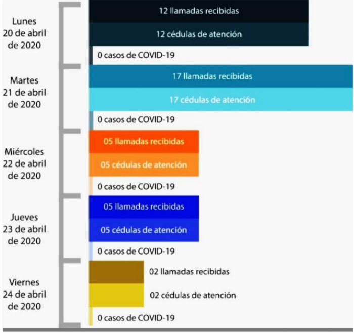 Resultado de esta medida, en cinco días "se registró un total de 41 llamadas telefónicas y se elaboraron el mismo número de cédulas de atención".