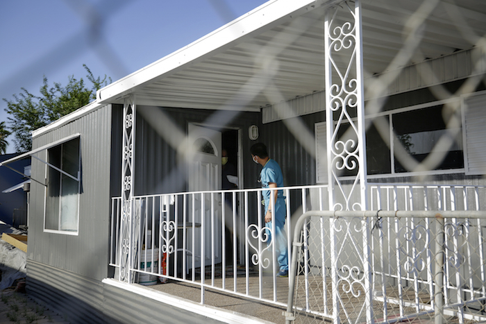 La primera parada fue en la casa rodante de un individuo de 62 años que vive solo y tiene diabetes y asma. Luego pasaron por la modesta vivienda de un hombre de 55 años con diabetes, que es una de siete personas infectadas con el coronavirus en una residencia donde viven 12 miembros de una misma familia de tres generaciones.