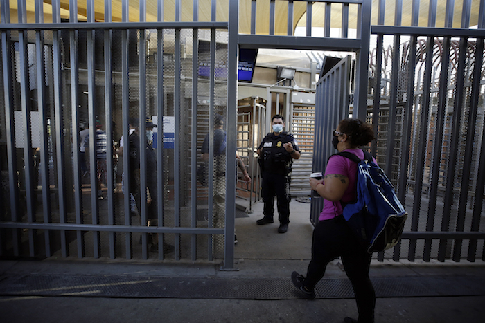 “Todo el mundo le teme a la pandemia, pero hay que cruzar”, dijo García después de mostrar sus documentos a los inspectores del servicio de inmigración al final de un corredor. “Hay que sobrevivir”.