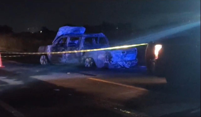 Por otra parte, en el libramiento oriente, se localizó una camioneta abandonada y en llamas a la altura de la comunidad del Escoplo.