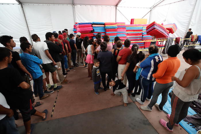 Además, las autoridades entregaron cobijas para que los migrantes puedan cubrirse del frío durante la noche, y se instalaron puestos de entrega de ropa y de calzado para unas personas que llevan más de 1 mil kilómetros de travesía, algunos tramos a pie, desde que cruzaron la frontera desde Guatemala el 19 de octubre.