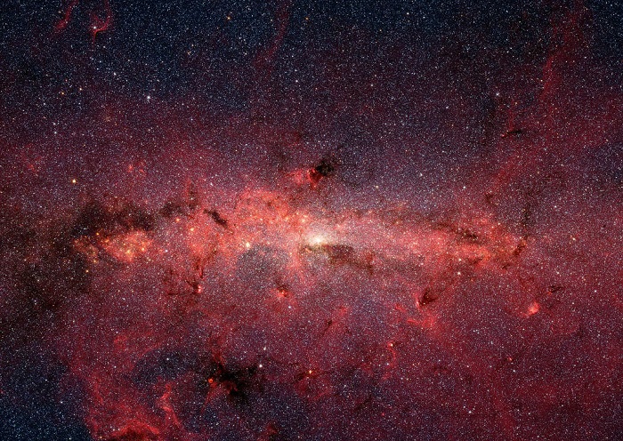 Las cámaras infrarrojas del Telescopio Espacial Spitzer penetran gran parte del polvo, revelando las estrellas de la abarrotada región del centro de la Vía Láctea. Foto: NASA
