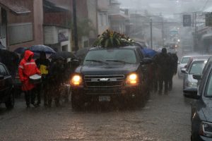 “Ya me cansé de llorar”, dijo Gutiérrez mientras la familia enterraba a Miguel Ángel. “Se nos acaba el agua, nos llegó la del cielo”, dijo mientras señalaba a la intensa lluvia.