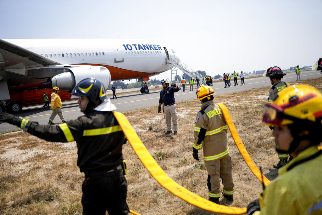 Entre tanto, un avión estadounidense con capacidad de descargar 36 mil litros de agua aterrizó por la tarde en la región del Biobío, una de las tres declaradas en estado de catástrofe por la magnitud y cantidad de incendios.