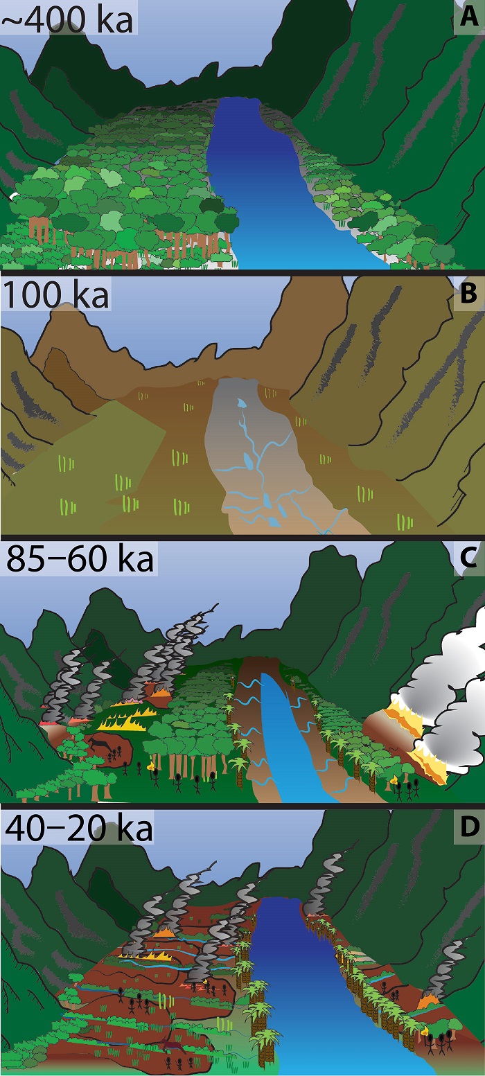 El aumento de los yacimientos arqueológicos tras el último periodo árido, junto con el aumento del carbón vegetal y la ausencia de bosques, sugiere que la gente manipulaba el ecosistema con el fuego, concluyen los investigadores.