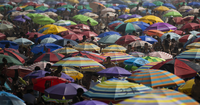 Bajo un sol fuerte de mediodía, era difícil encontrar un espacio vacío en la arena. Delante de Suellen, miles de personas disfrutaban de un día de playa, convivían cientos de sombrillas, grupos de jóvenes jugando con pelotas y familias tomando sol, pese a la orden de la alcaldía que prohíbe permanecer en la arena