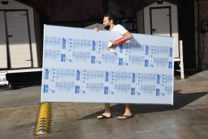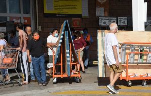 Largas filas en centros comerciales para comprar víveres y material para reforzar ventanas y puertas. Foto: Elizabeth Ruíz, Cuartosuro.
