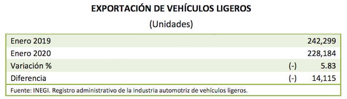 General Motors fue la mayor exportadora, a nivel nacional, con 54 mil 337 vehículos ligeros colocados en el extranjero, pese a reportar una pérdida de 10.2 por ciento anual. Honda representó la mayor baja en las exportaciones, con un -41.4 por ciento, pasando de 17 mil 564 autos exportados en enero de 2019, frente a las 10 mil 300 de este primer mes.
