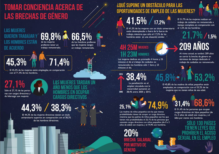 La OIT, además, ha establecido en un reciente informe que a nivel mundial persiste una diferencia de remuneración del 20 por ciento entre hombres y mujeres, una realidad de la que no se salvan ni los países considerados más evolucionados en la materia.