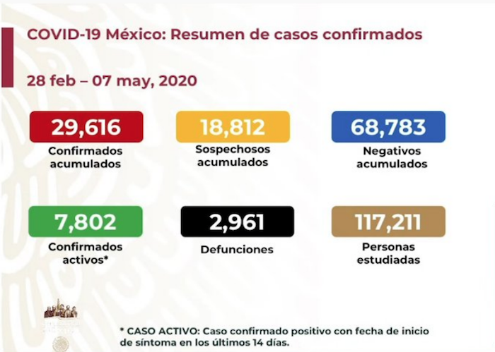 En total, en el país se han registrado 29 mil 616 casos positivos. 7 mil 802 son clasificados como activos, es decir, los que se registraron en los últimos 14 días.