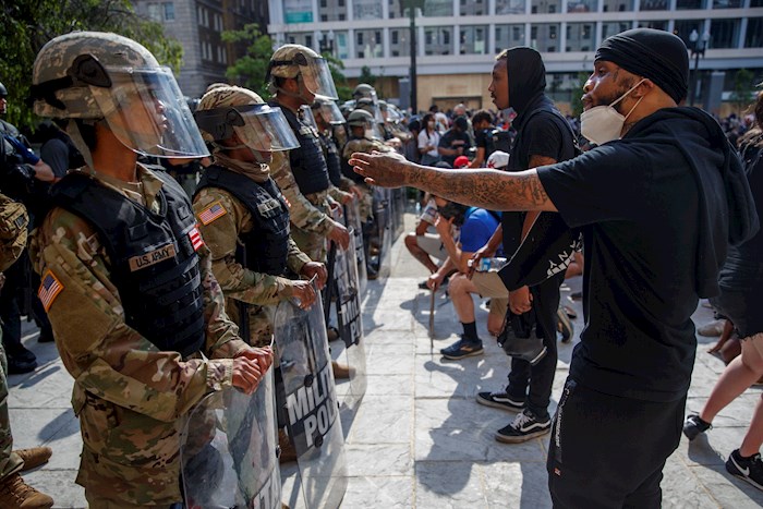 Unos 3 mil 900 reservistas de la Guardia Nacional procedentes de 11 de los 50 estados de EU fueron enviados a la capital el pasado fin de semana, cuando las protestas pacíficas derivaron en disturbios, saqueos y enfrentamientos con las fuerzas de seguridad.