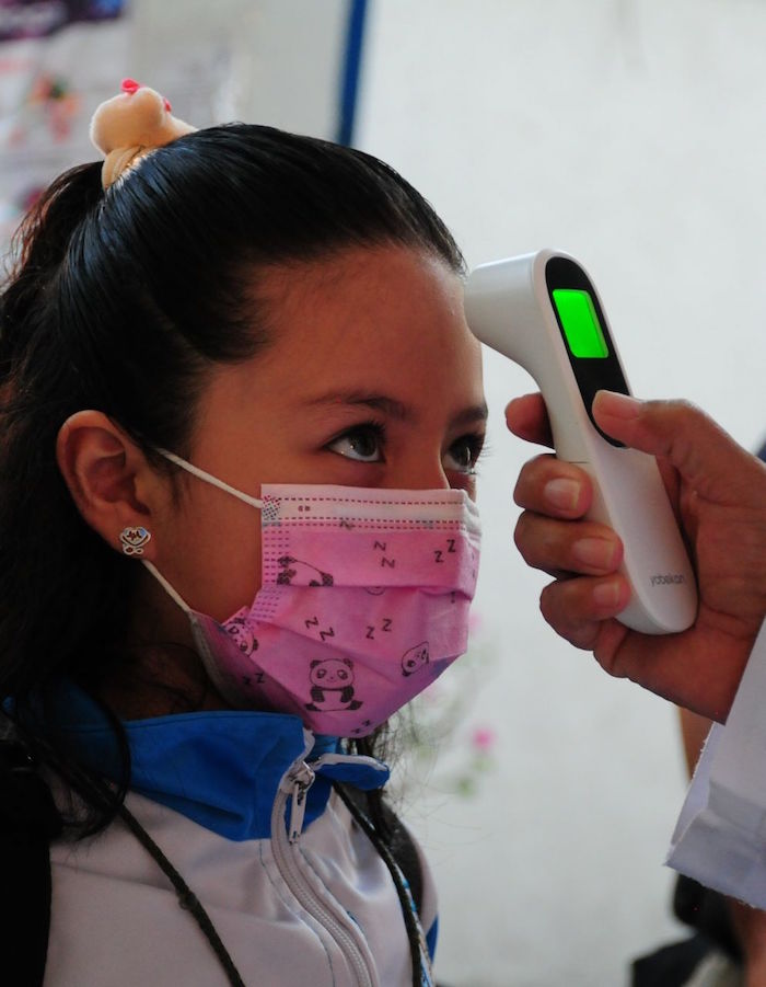 Toma de temperatura a alumna en escuela de la Ciudad de México. Foto: Daniel Augusto, Cuartoscuro.