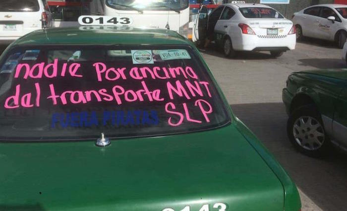 Taxistas de San Luis Potosí se unieron a la marcha nacional de taxistas, con un recorrido pacífico y sin afectar más allá de un carril de circulación en las calles elegidas para la manifestación.