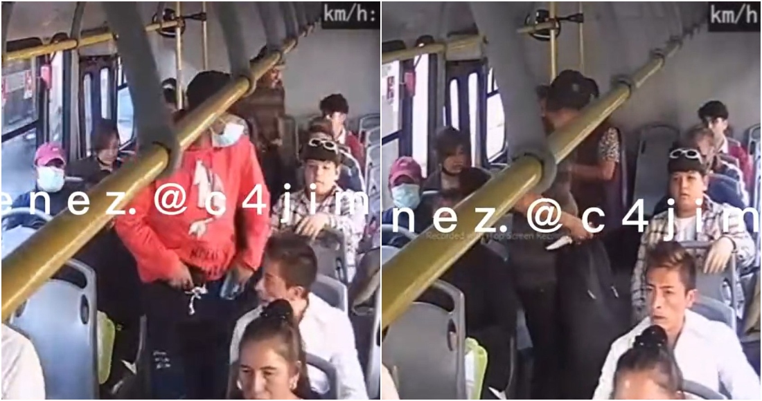 La cámara de un autobús en Toluca grabó el momento en el que los asaltantes robaron sus celulares a los pasajeros.