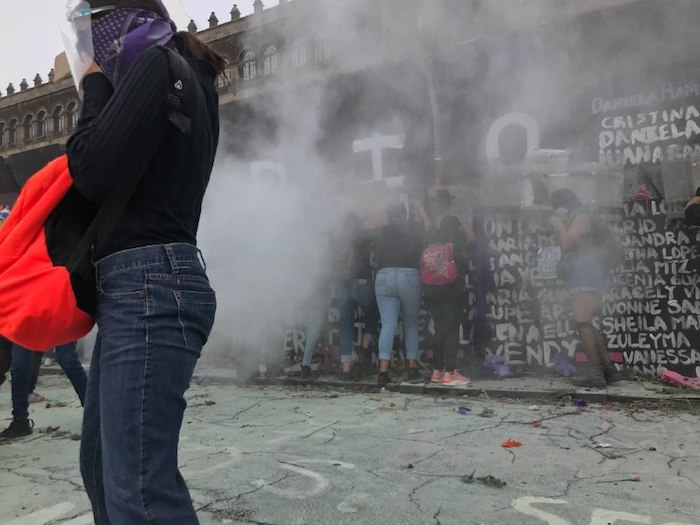 A diferencia de años anteriores, el Gobierno levantó un enorme muro de metal alrededor del Palacio Nacional, residencia de López Obrador, para evitar que manifestantes feministas pinten los muros del edificio.