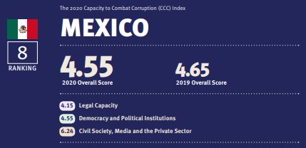"En la práctica, no ha cambiado mucho para México; de hecho, el país ha cambiado se estancó y mantiene una pobre capacidad para detectar, castigar y prevenir la corrupción", aseguraron en su informe anual la organización Americas Society/Council of the Americas (AS/COA) y la empresa de consultoría Control Risks, con base en en datos de 2019.