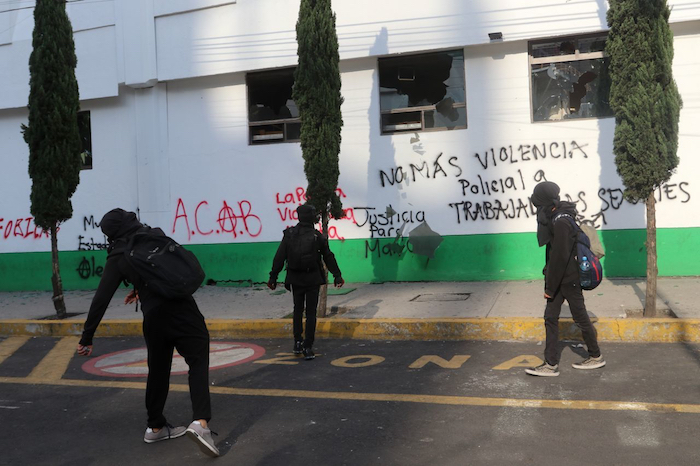 A través de un comunicado, la SSC-CdMx detalló que al menos un grupo de 110 encapuchados marcharon del Ángel de la Independencia al Zócalo capitalino, quienes realizaron pintas, rompieron vidrios y saquearon algunos negocios con la finalidad de provocar a los elementos de la seguridad ciudadana, hecho que les resultó negativo.