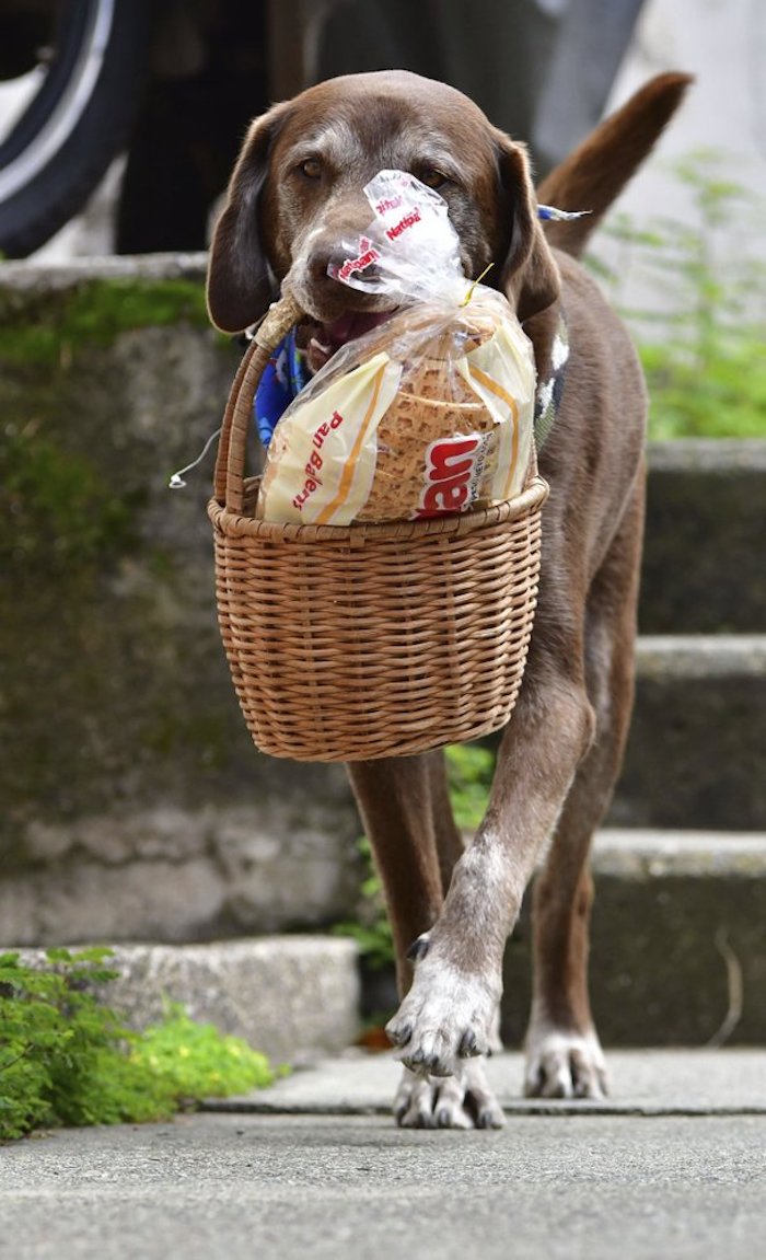 MEDELLÍN, 8 de julio (AP) — Eros, de ocho años, trota por las calles de Medellín varias veces al día con una cesta de paja en su hocico, llevando verduras, frutas y comida empacada a los clientes del mercado El Porvenir. El perro labrador color chocolate es recompensado con meriendas y masajes en su peluda cabeza.
