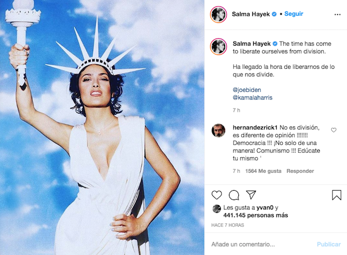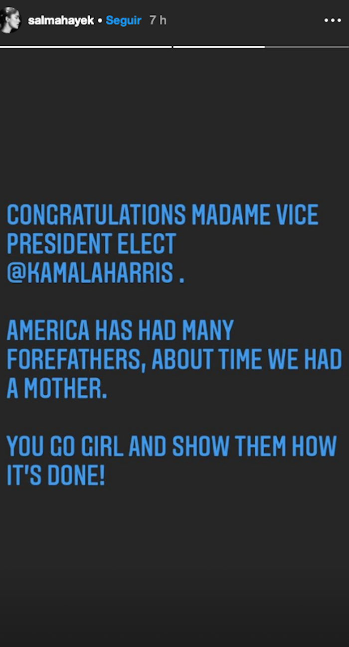 Además, Salma etiquetó en la publicación a Joe Biden y a Kamala Harris, la primera mujer en ocupar la Vicepresidencia de Estados Unidos.