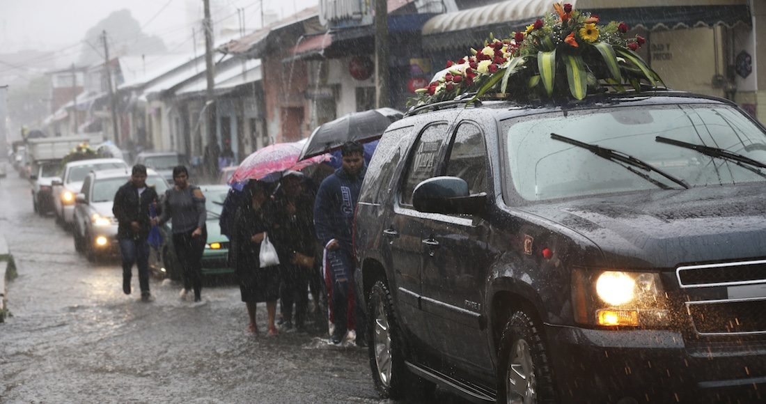 “Ya me cansé de llorar”, dijo Gutiérrez mientras la familia enterraba a Miguel Ángel. “Se nos acaba el agua, nos llegó la del cielo”, dijo mientras señalaba a la intensa lluvia.