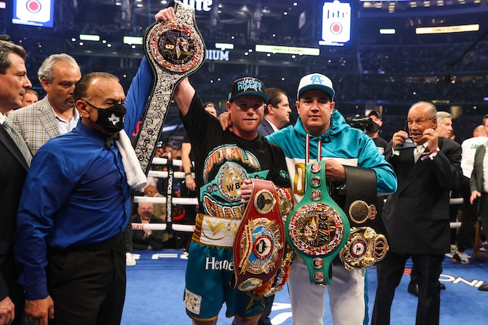 Álvarez (56-1-2, con 38 nocauts) se apoderó del cinturón de la OMB que poseía Saunders y que hará juego en sus vitrinas con los cetros de la AMB y el CMB.