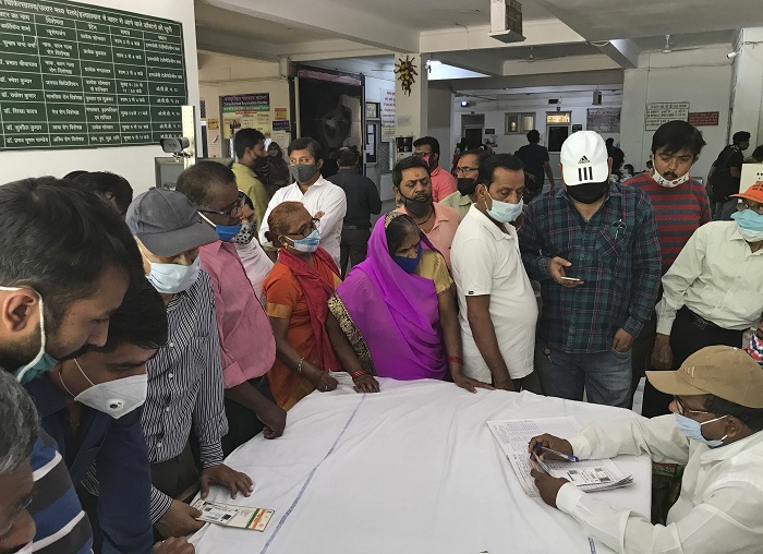 Un grupo de gente espera para registrarse en una lista de vacunación contra el coronavirus, en el hospital Railway, en Prayagraj, India. Foto: Rajesh Kumar Singh, AP