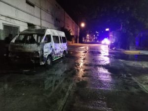 Guerrero, 9 de octubre (El Sur).- Una camioneta Urvan del transporte público de la ruta a Pie de la Cuesta fue incendiada a una cuadra de la avenida Costera.