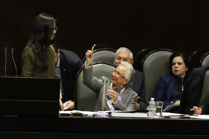 La Diputada Laura Rojas entregó un cigarro de mariguana a Sánchez Cordero. Foto: Cuartoscuro.