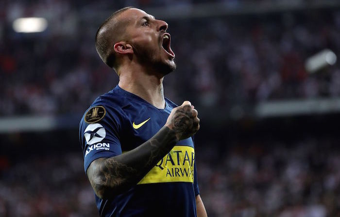 En ese escenario, se mueve mejor el conjunto de Guillermo Barros Schelotto, que como en la ida, aprovechó la mejor ocasión al borde del descanso. Fue un pase en profundidad de Nahitán Nandez que no llegó a despejar Javier Pinola y Benedetto -convertido en héroe desde las semifinales- transformó en gol, tras regatear a Maidana y ejecutar a la perfección sobre el achique de Franco Armani (m.44).