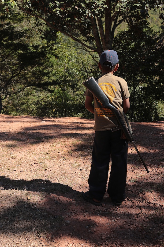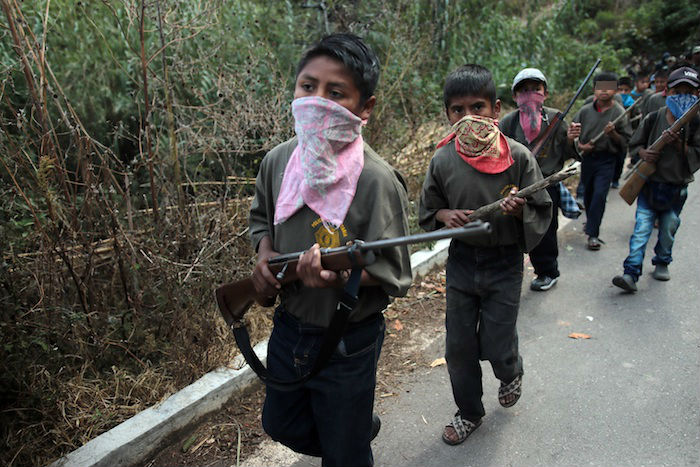 En esta zona es “normal que se enseñe a usar las armas a los niños” presume el coordinador y fundador de la CRAC-PF, Bernardino Sánchez Luna, pero aclara que no “es para hacer un mal, sino para que ellos aprendan a defenderse y seguir defendiendo nuestras comunidades del crimen organizado”.