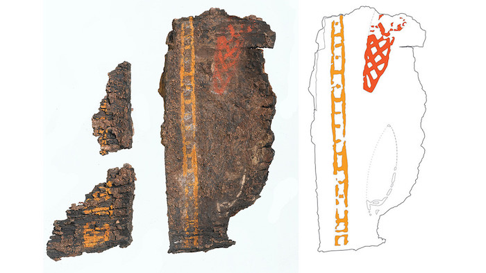 Otro artefacto clave son los restos de una caja pintada, única muestra conocida de tradiciones decorativas de este tipo entre los anglosajones de entonces. En concreto, los fragmentos de madera conservaron dibujos rojos y amarillos.