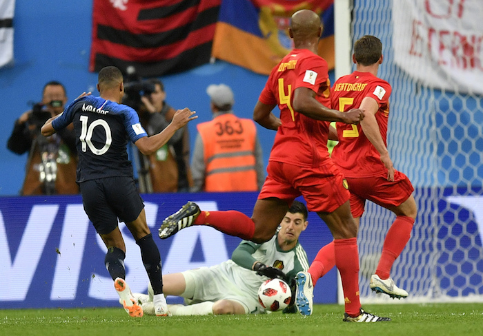 Pero, fueron los belgas quienes crearon la primera opción clara de gol en el minuto 21, con una media vuelta de Alderweireld, que Lloris desvió a saque de esquina, en tanto que los galos la tuvieron en el 39 con una combinación entre Mbappe y Pavard, con un disparo de este que Courtois desvió a saque de esquina.