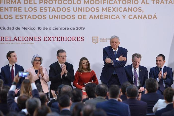 En Palacio Nacional se congregaron los equipos negociadores del Tratado entre México, Estados Unidos y Canadá (T-MEC) para ratificar por parte de los ejecutivos las enmiendas y cambios al acuerdo comercial.