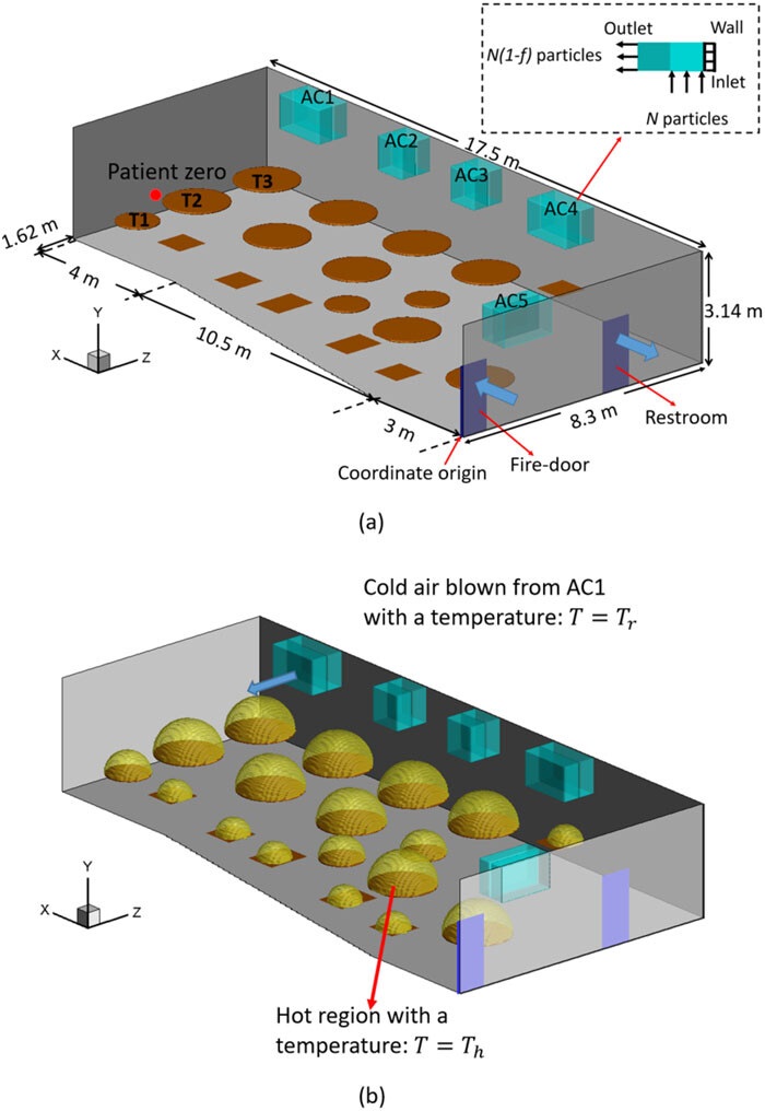 "Nuestra simulación captura varios factores físicos, incluido el flujo de aire turbulento, el efecto térmico, el transporte de aerosoles en turbulencia, la eficiencia de filtración limitada de los acondicionadores de aire, así como la geometría compleja del espacio, todos los cuales juegan un papel en la transmisión aérea", señala Hong.