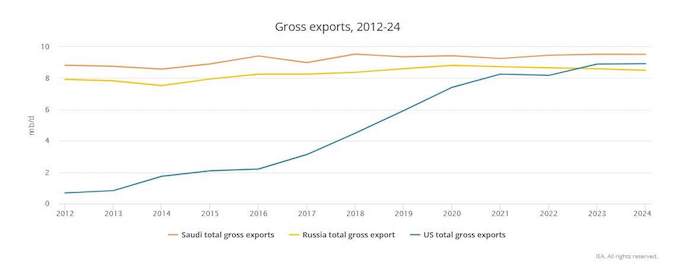 En 2021, Estados Unidos será un exportador neto de petróleo gracias al empuje de la industria petrolera basada en el fracking. En 2022, habrá superado a Rusia como exportador bruto de petróleo y finales de 2024 le estará pisando los talones y amenazando el reinado de Arabia Saudita como el mayor exportador de crudo del mundo, según las previsiones de la AIE.