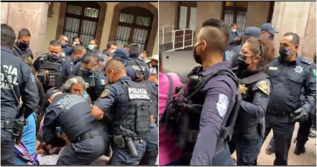 Ahí apareció la figura de Pedro Hernández, delegado de Gobierno Municipal, quien se puso agresivo y arrancó la manta de los manifestantes que decía: “No a la militarización del territorio”.