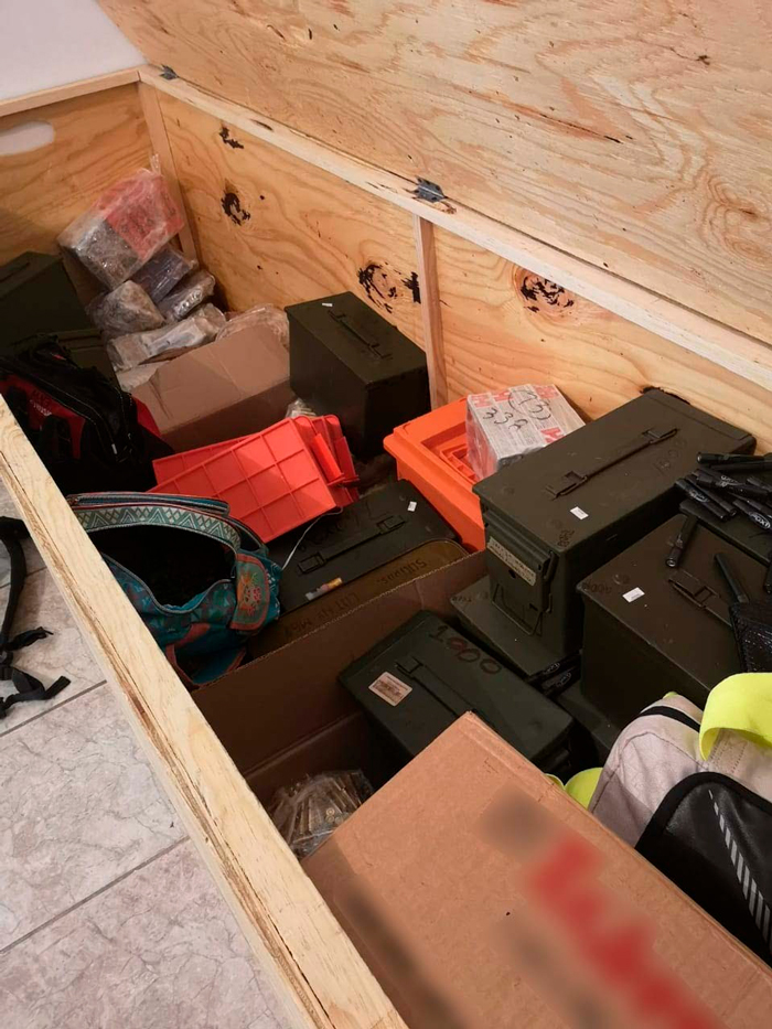 En el lugar se localizaron también cajas de madera con 39 armas largas y un arma colectiva Barret calibre .50 mm, además se ubicó armamento; así como dos automóviles, una camioneta y un auto compacto.