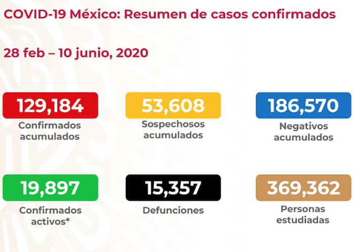 Ciudad de México, 11 de junio (SinEmbargo).– En día 11 de la nueva normalidad, México alcanzó las 15 mil 944 muertes por la COVID-19. En total, en el país se han registrado 133 mil 974 casos confirmados, de los cuales 20 mil 832 se encuentran activos.