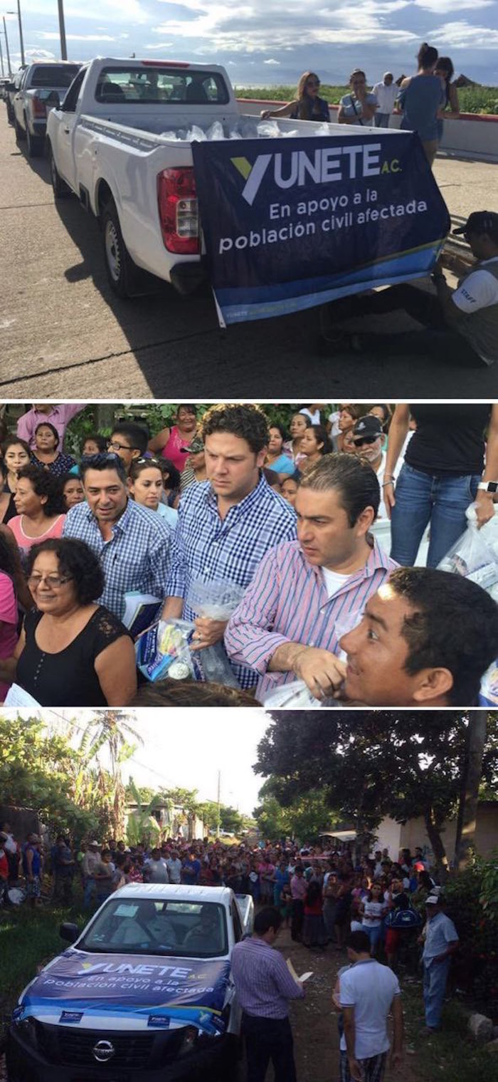 En las fotos que circularon este fin de semana se apreciaban camiones y camionetas con la leyenda “Yunete A.C.”, y con el slogan “En apoyo a la población civil afectada”. También se observa a una mujer con una playera azul entregando despensas con la misma etiqueta.