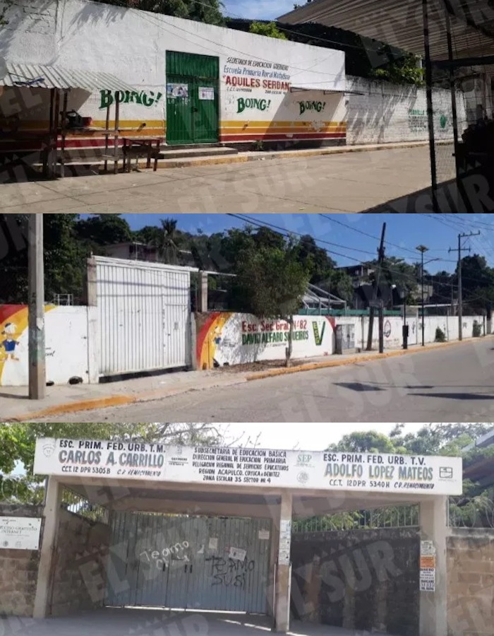 La primera escuela que adelantó vacaciones fue la secundaria Bicentenario, ubicada en el fraccionamiento San Agustín, zona suburbana de Acapulco, luego de que recibieron dos mensajes con amenazas de extorsión.
