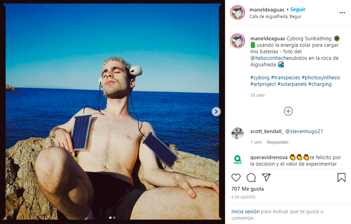 El artista, fotógrafo y productor musical catalán, Manel De Aguas, se implantó dos aletas artificiales en la cabeza para conectarse con la naturaleza; el dispositivo, que fue diseñado por el, es un órgano sensorial cibernético y forma parte de su elección de identidad "transespecie".