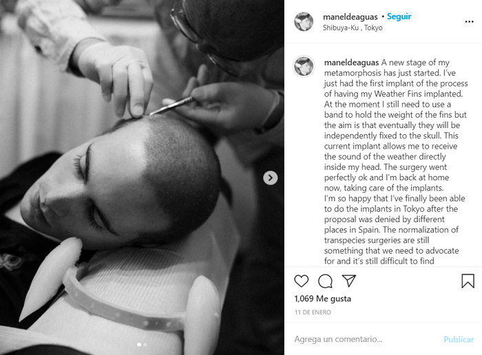 El artista catalán compartió en su redes imágenes y videos del momento en que le fue colocado el dispositivo en Japón. Foto: Instagram @maneldeaguas