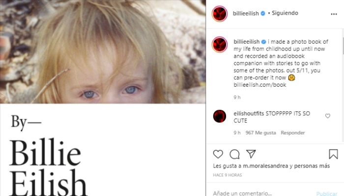 En un comunicado el martes, Eilish dijo: “Pasé muchas horas a lo largo de muchos meses revisando cuidadosamente los álbumes y archivos de mi familia, eligiendo personalmente las fotos en este libro. Espero que les gusta tanto como a mí”.