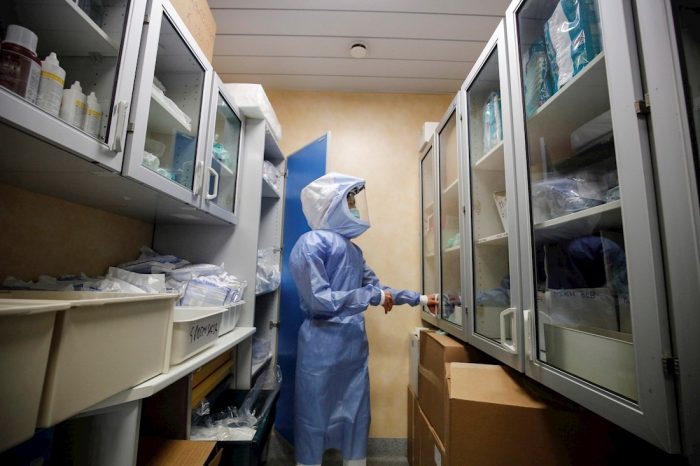 Un trabajador médico se pone un equipo de protección personal (EPP) antes de comenzar a trabajar en la Unidad de Cuidados Intensivos (UCI) para pacientes infectados con la enfermedad por coronavirus (COVID-19) en el Policlínico Hospital di Tor Vergata, en Roma, Italia. Foto: Guiseppe Lami, EFE