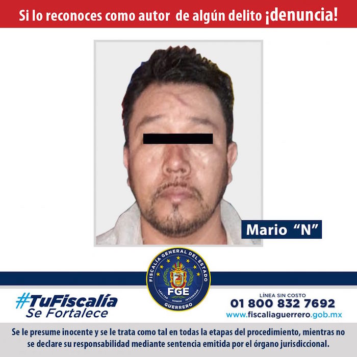 "La Fiscalía General del Estado informa la detención con orden de aprehensión y vinculación a proceso de Mario «N», alias «El Japo», acusado como probable responsable de homicidio calificado de dos sacerdotes en febrero de 2018 en la Región Norte de Guerrero", se puede leer en el boletín.